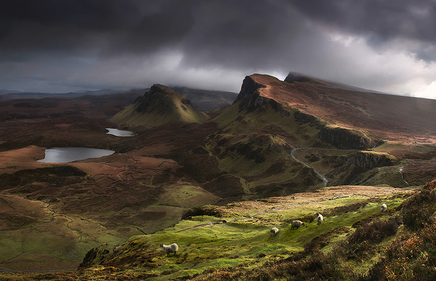 Like his other photos, there is an incredible amount of detail here. Every time I look at this image, I find that my eye follows the same path. First the mountain peak on the horizon, then down the ridge to the grass. But rather than rest there, it then goes onto the sheep, and I find myself getting really close and exploring sheep to sheep, then across to the lakes. There is just so much detail to explore. The incredible sharpness is certainly a large part of this, as these elements are not simply part of the background or foreground, but rather features in their own right. That’s in keeping with his other images too, where the obvious point of interest fades as you explore more and more deeply.